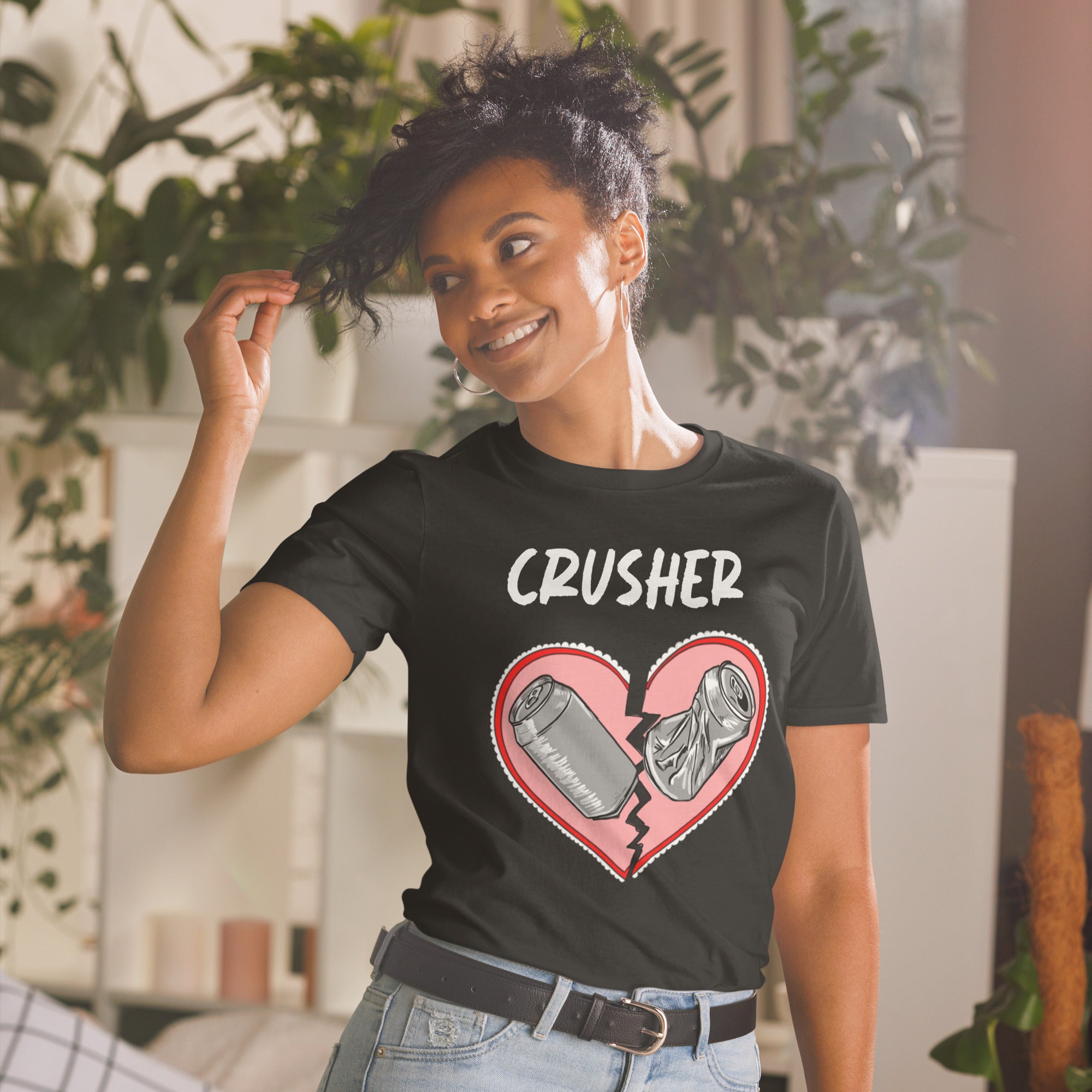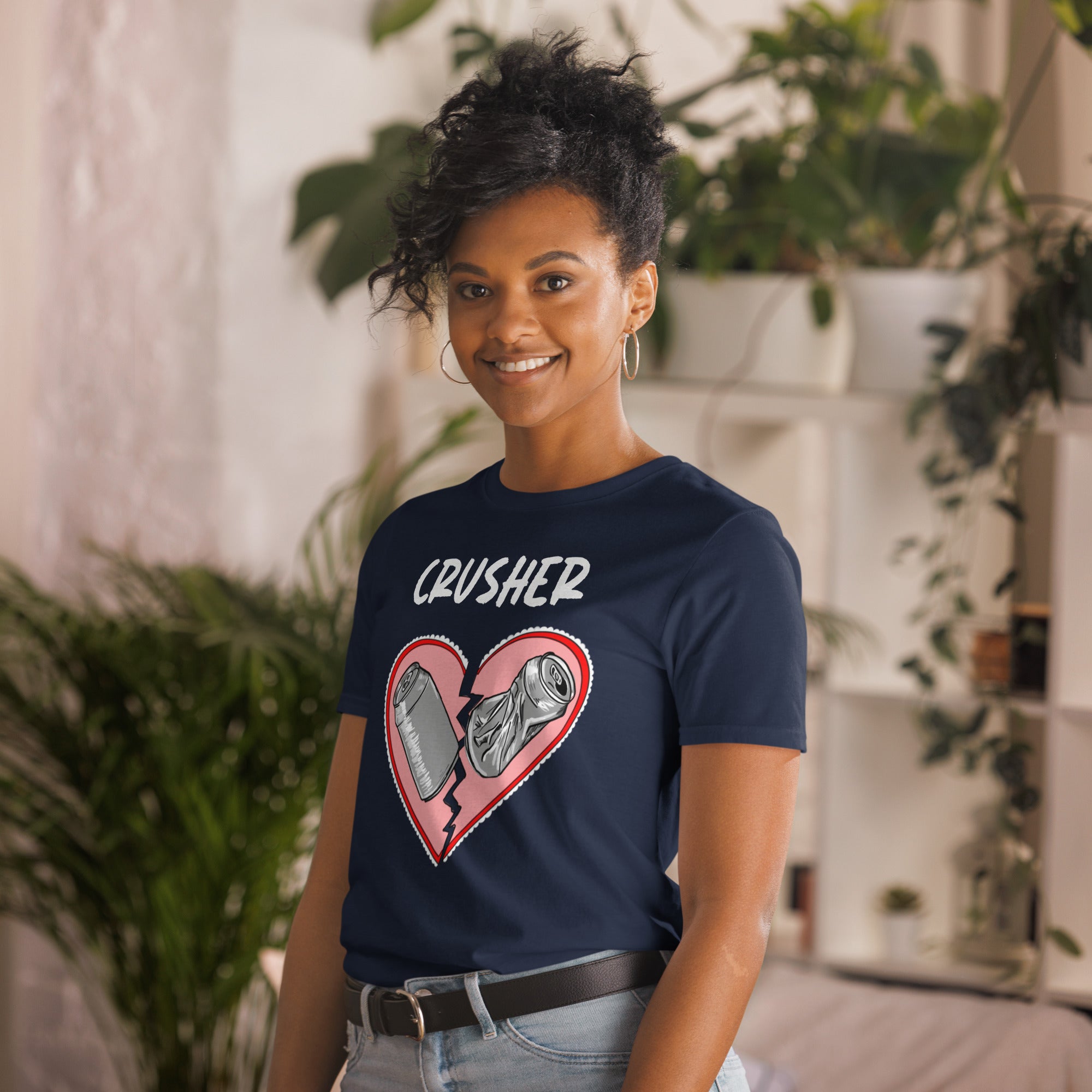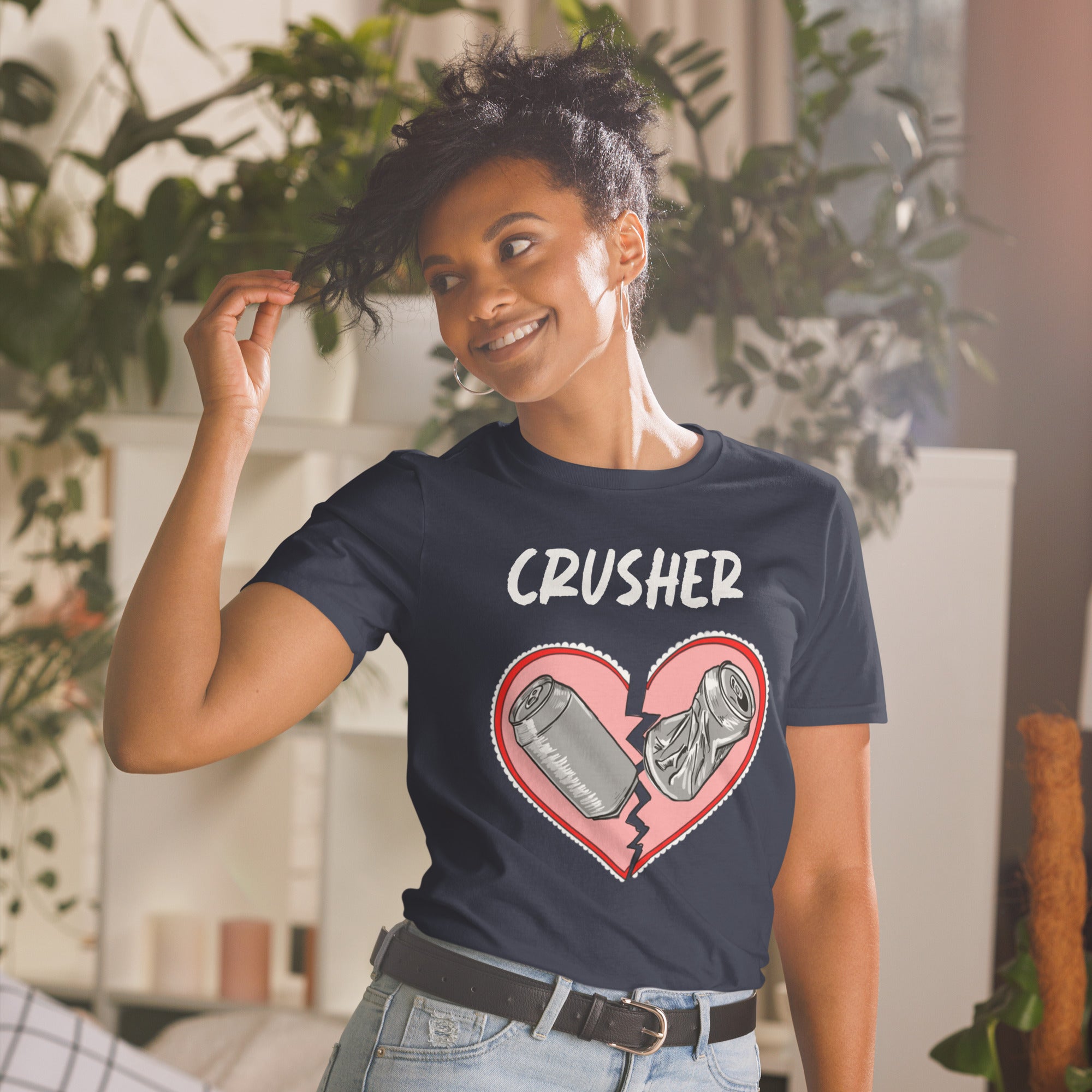 Hey crusher, you’re crushin it. Whether it’s experiences you’re crushin, or recycling for maximized space in the bin or both, you’re a crusher. You've now found the staple t-shirt of your wardrobe. It's made of 100% ring-spun cotton and is soft and comfy. The double stitching on the neckline and sleeves add more durability to what is sure to be a favorite!