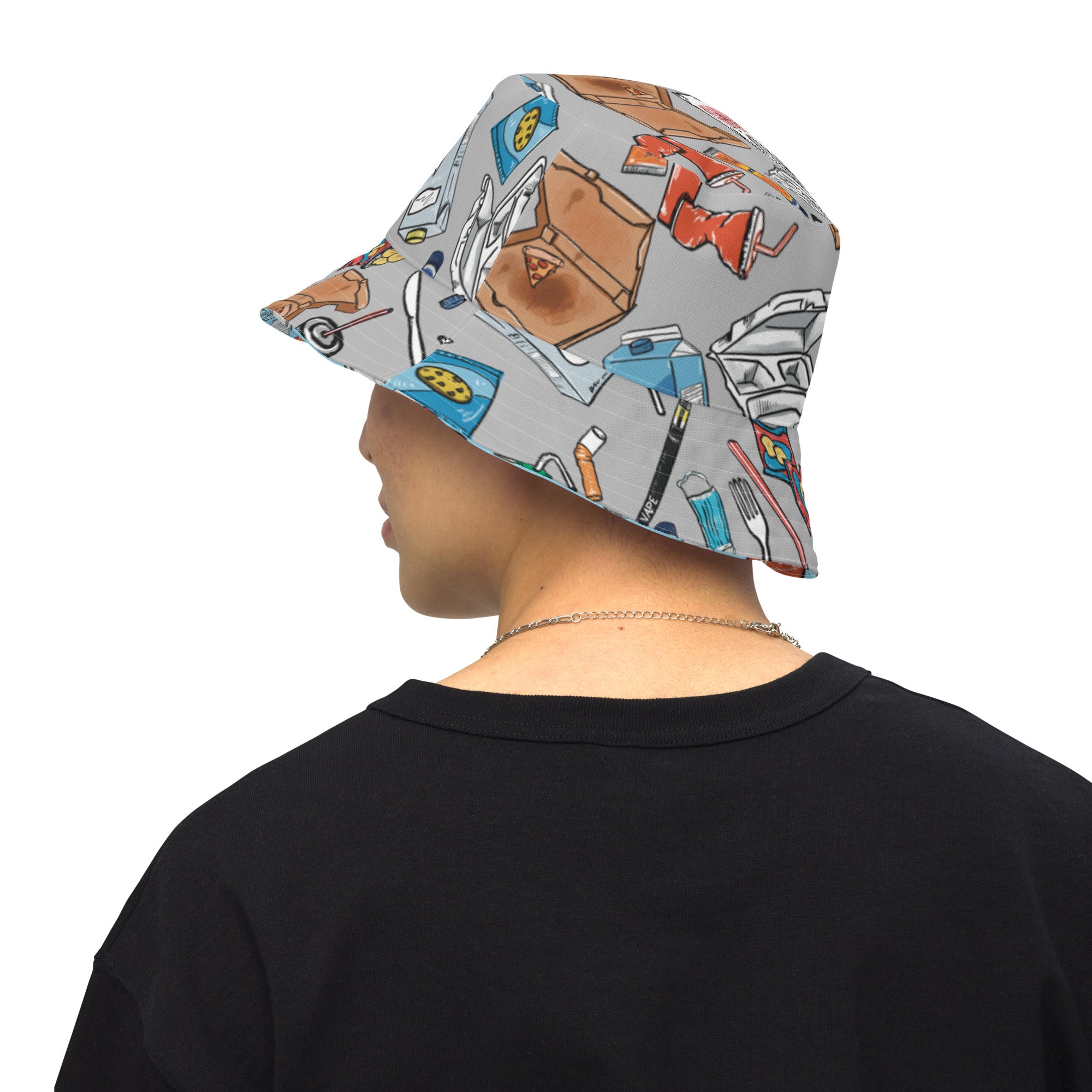 This bucket hat doubles as a waste sorting educational tool not to mention trash talk conversation starter, with one side patterned with recycling and the other with landfill. The same designs used in WeGenerative waste sorting signage are double brimming with style in this cool hat.